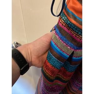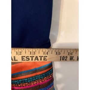 You'll look like a beautiful tapestry in this CeCe by Cynthia Steffe midi dress. With a navy top and multicolored striped skirt, you can pair it with a blazer at the office and later go wild on date night (but not too wild, ok? I want you to be safe). It also has what we women have been asking for since the dawn of time, pockets. Hits slightly below the knees (midi dress). Waist and pit-to-pit measurements pictured. Excellent, like new condition.