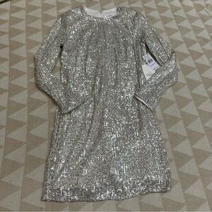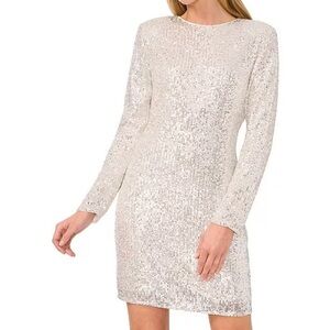 Cece champagne Sequin Crew Neck Long Sleeve Sheath Dress