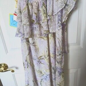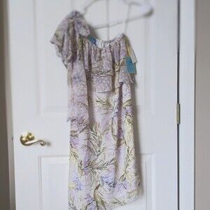 Cece off shoulder Baja palm clip.dress soft violet lavender & green - NWT - XS