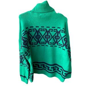Cece size M fair isle green turtleneck sweater . Oversized relaxed fit. Minimal wear.