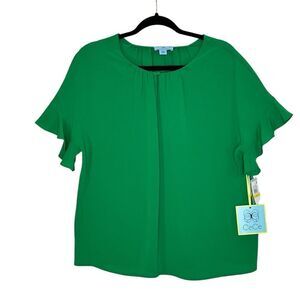 Cece Kelly Green Flutter Sleeve Top | Size M