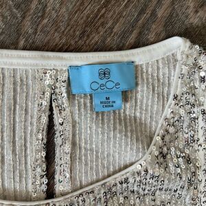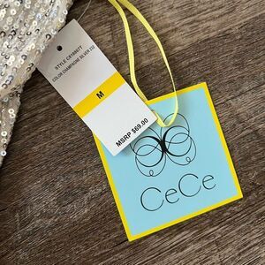 This listing is for a NWT's Cece Sequin Keyhole Back Tank in silver in size medium. Decked out in sequins, this shimmery tank from Cece will bring the party with you.