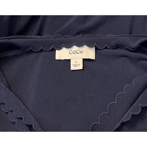 Cece Women's XS Navy Blue Scalloped V Neck Trim Top Short Sleeve Blouse