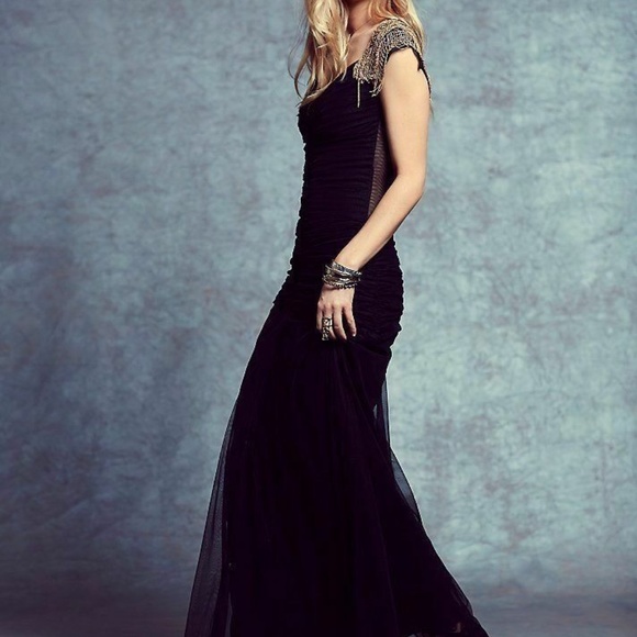 Cecelia De Bucourt Shirred Black Mesh Gown-NOS