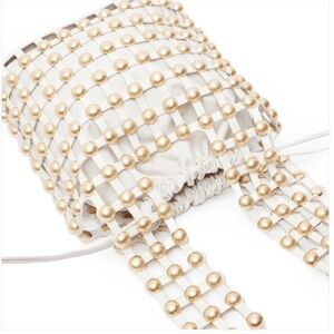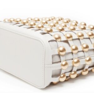 A soft inner pouch is caged in gold studs for a bag that will get asked about anytime you are out.