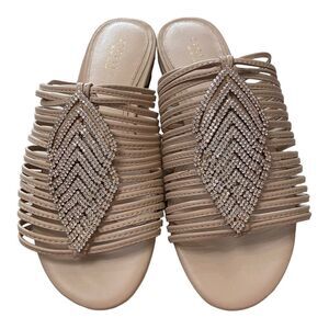 Cecelia New York Darleen Embellished Caged Leather Slide Sandals NEW 6.5