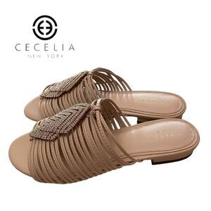 New in Box with Dust Bag. CECELIA NEW YORK women's "Darleen" Embellished, Caged, Leather, Slide Sandals.