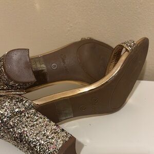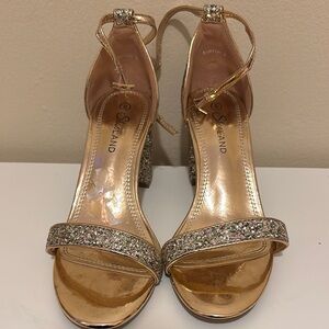 Step into elegance with Cecelia New York's gold heels, designed with a chic ankle strap and a sleek, slim heel. These open-toe shoes are adorned with shimmering embellishments, perfect for adding a touch of glamour to any special occasion. Crafted with a luxurious metallic finish, they promise to elevate your style effortlessly.