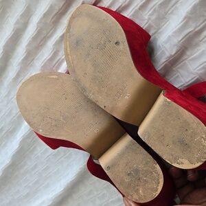Step out in style with these vibrant red suede sandals. Perfect for any occasion, these shoes offer both comfort and elegance.