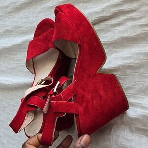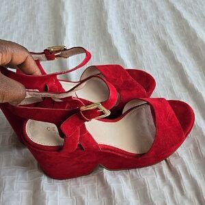 Cecelia New York Red Suede Betty Platform Wedge Women's Sandals