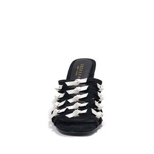 Cecelia New York Rickee Caged Black White Leather Block Heel Sandal Mules Pump 7