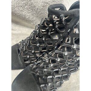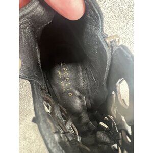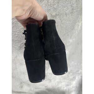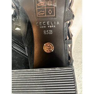 Cecelia New York Women’s 8 Boots Bootie Black Suede Block Heel Leather Ribbons