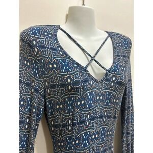 Cecico Dress Small Blue Criss Cross Front Bell Flare Sleeves Rayon Blend Boho