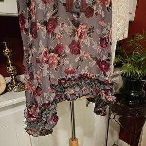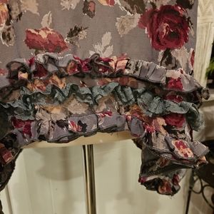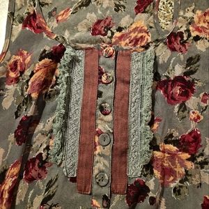 What a beauty this top is! Features front panel with lace,ribbon,fringe and fabric covered buttons.
