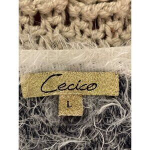 Cecico Womens Aztec Pattern Eyelash Sweater Large Southwest Black & White