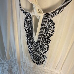 Cecico ladies tunic blouse medium off white black kaftan tunic embroidered