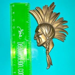 Cecil B DeMille 'North West Mounted Police Enamel Indian Chief Head Pin BroochThis brooch is a piece of memorabilia from the 1940 movie NORTH WEST MOUNTED POLICE directed by Cecil B. DeMille and starring Gary Cooper.The brooch is in the form of an elegant Native American wearing a feathered headdress. On the back is a plaque labeled, "North West Mounted Police - Cecil B. DeMille - copyrighted". The pin measures approx. 3-5/8" x 2”