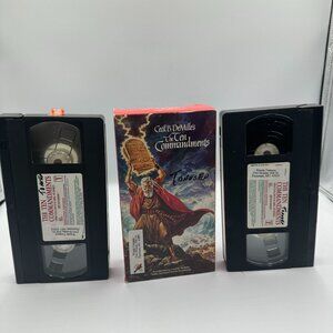 A 1990 VHS release of Cecil B. DeMille’s "The Ten Commandments" starring Charlton Heston. Includes Dolby Surround Stereo Soundtrack and rare introduction by DeMille. Pre-owned condition.