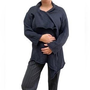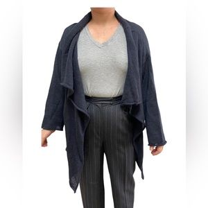 Cecile Benac M Black Wool/Silk Blend Open Front Cardigan