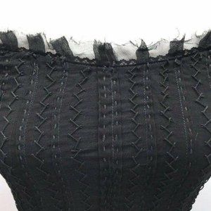 Style:Design For Free People .Fit and Flare Mesh Corset Knee Length Dress.Flare Layered Skirt ,Raw Hem.Fully Embroidered with Spaghetti Straps