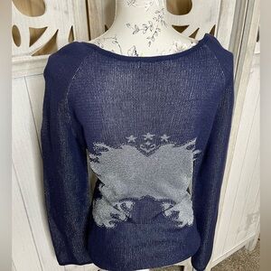Cecilia Prado Top Blue Metallic Silver Studded Light Sweater Size XL Anthro.