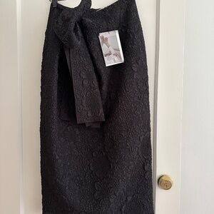 Highlighting the craftsmanship of her bespoke fabrics. Cecilie Bahnsen introduces the Vivian skirt A modern silhouette that showcases the unique textures of her borage cloquÈ, adorned with a dramatic bow for additional romance and brand DNA.
