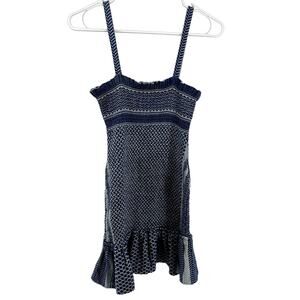 Cecilie Copenhagen Judith Fluted Shirred Cotton Jacquard Mini Dress Blue Small