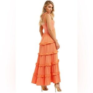 Cecilie Copenhagen Mina Orange Pink Smocked Long Maxi Dress Tie Size Medium