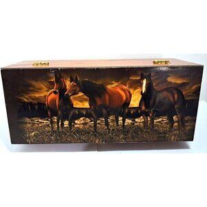 Cedar Lined Decorative Box 9.5"x4"x3" Horses Scenic