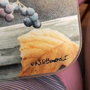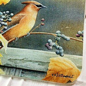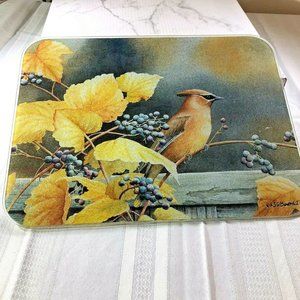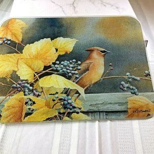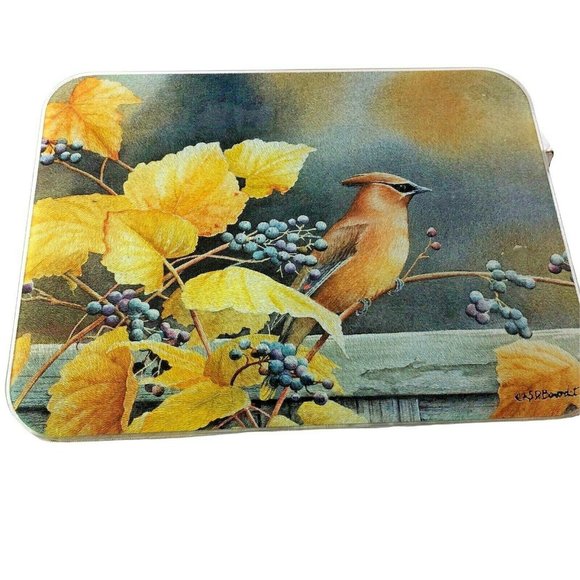 Cedar Waxwing Bird on Grapevine rectangle tempered glass cutting board 16" x 12"
