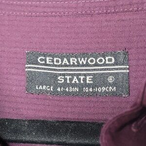 Cedarwood State Mens Button Up Shirt Grid Long Sleeve Large 41-43" Viscose Blend Wine Purple Maroon