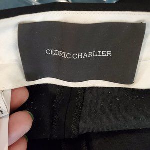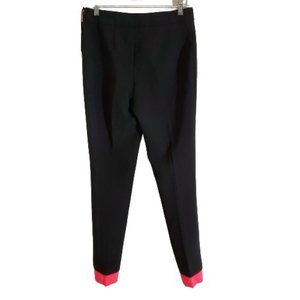 Cedric Charlier couture designer black ankle pants with melon colored contrasting detail at the ankle. Photos with differing color for view of fit and inspiration. Beautiful quality in great condition with some light discoloration along the ankle trim.