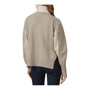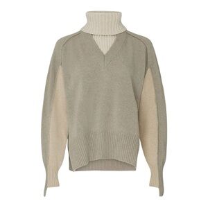 Cedric Charlier Layered Turtleneck Sweater in Gray & Beige Wool Blend Size 14