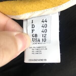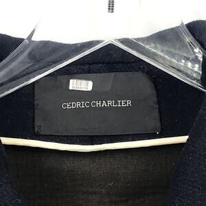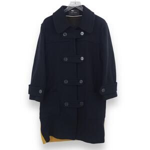 Cedric Charlier Navy and Yellow Colorblock Coat 10 Collared Button Front Pocket $1695.00
