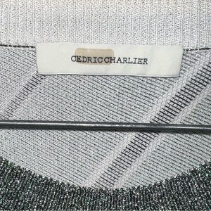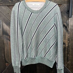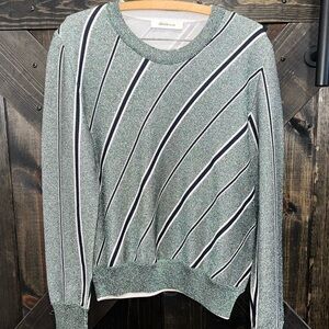 Stunning! Paris Designer Cedric Charlier striped Lurex sweater. US 12. Full glitter. Perfect top for Christmas parties, holiday events or New Years celebrations. Pictures do not do this top justice. So sparkly & festive. White stripes with green & silver glitter throughout. Crewneck style. Relaxed & soft. A bit of a boxy fit. Cropped length compared to US sized sweaters. Preloved. Please see all photos for condition. No noted flaws.