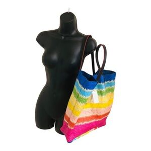 Cee Klein Rainbow striped straw jute beach summer island bucket tote new