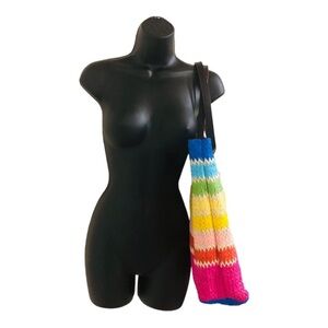 Cee Klein Rainbow stripe straw jute beach summer island bucket tote shoulder bag