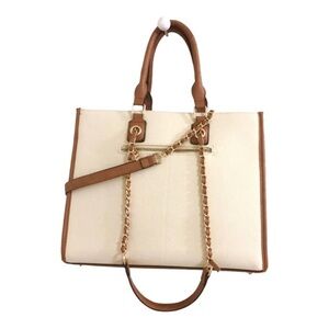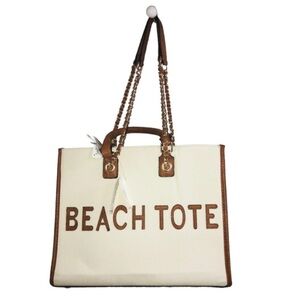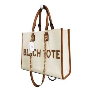 Cee Klein canvas brown trim gold chain strap crossbody ‘beach tote’ tote bag new