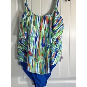 Ceeb Size 10 Women's 3 Tiered Ruffle Tankini Top One Piece Swimsuit- Multi Color