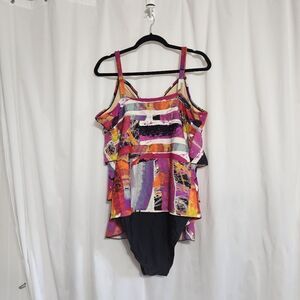 Celebrate multicolor abstract padded bust ruffled tiered tummy very good condition 42" bust 38" waist 34" long