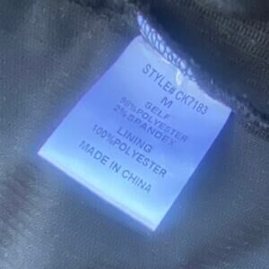 Material: Shell – 95% Polyester / 5% Spandex; Lining – 100% Polyester
