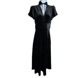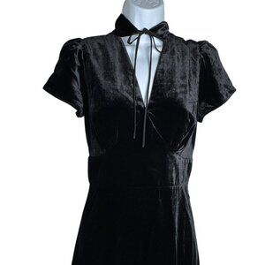Cefinn Jacquetta black cutout velvet midi dress US size 4 NWT ties at neck