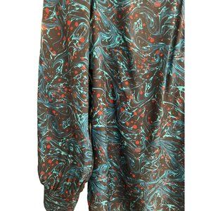 Cefinn Women's Olivia Gathered Printed Twill Blouse US Size 4 Silk Blend Swirl