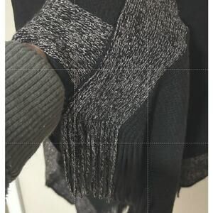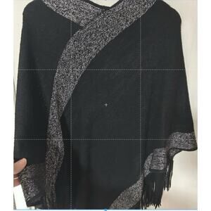 Black soft upscale poncho with silver accents. You will love this on a fall or winter outing.. Perfect for a classy girl.