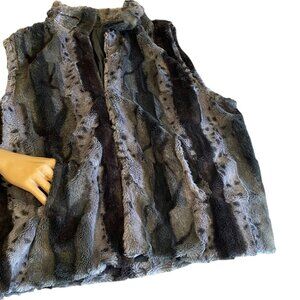 Cejon Faux Fur Vest Animal Print Gray & Black XL #311K