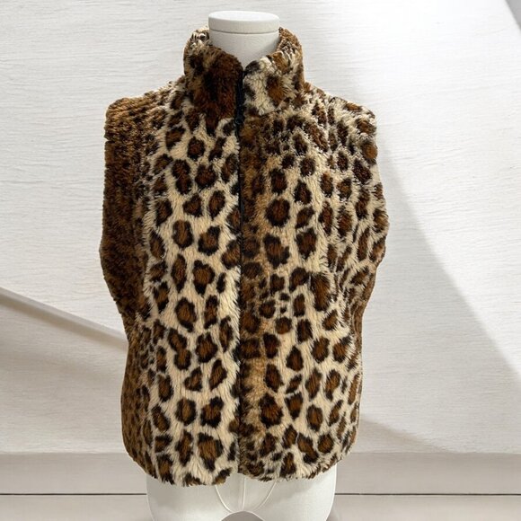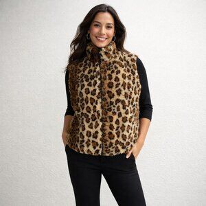 Cejon Leopard Faux Fur Vest Women Small Winter Cozy Animal Print Glam Layering