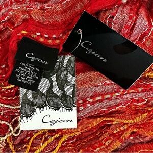Cejon Orange Pink Metallic Textured Scarf Wrap