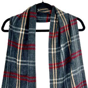 Cejon Plaid Fringe Scarf Charcoal Red Beige 100% Acrylic Italy Unisex NWT's