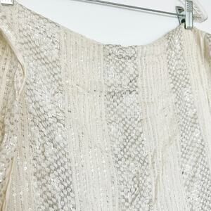 Cejon Silver Sequin Metallic Striped Woven Ivory Scarf Shawl NWOT