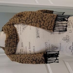 Cejon Tan And Brown Animal Printed Italian Tasseled Scarf - OS